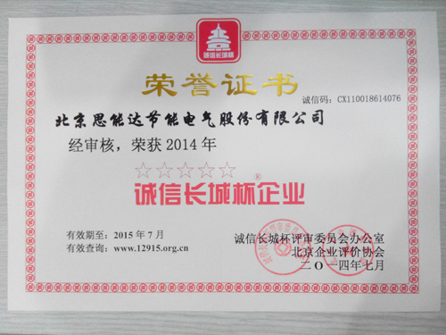 2014年7月11日,经北京企业评价协会初审、诚信长城杯评审委员会办公室综合评审、专家组联合审议,问鼎娱乐官网成为“2014年首批诚信长城杯创建企业”。